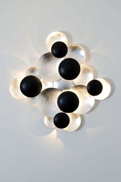 Les luminaires de la série Bolladaria de la société Holländer montrent ce qui est possible avec des coupes, des couleurs et de la lumière. Choisissez parmi différentes tailles et couleurs, comme l'or ou l'argent.